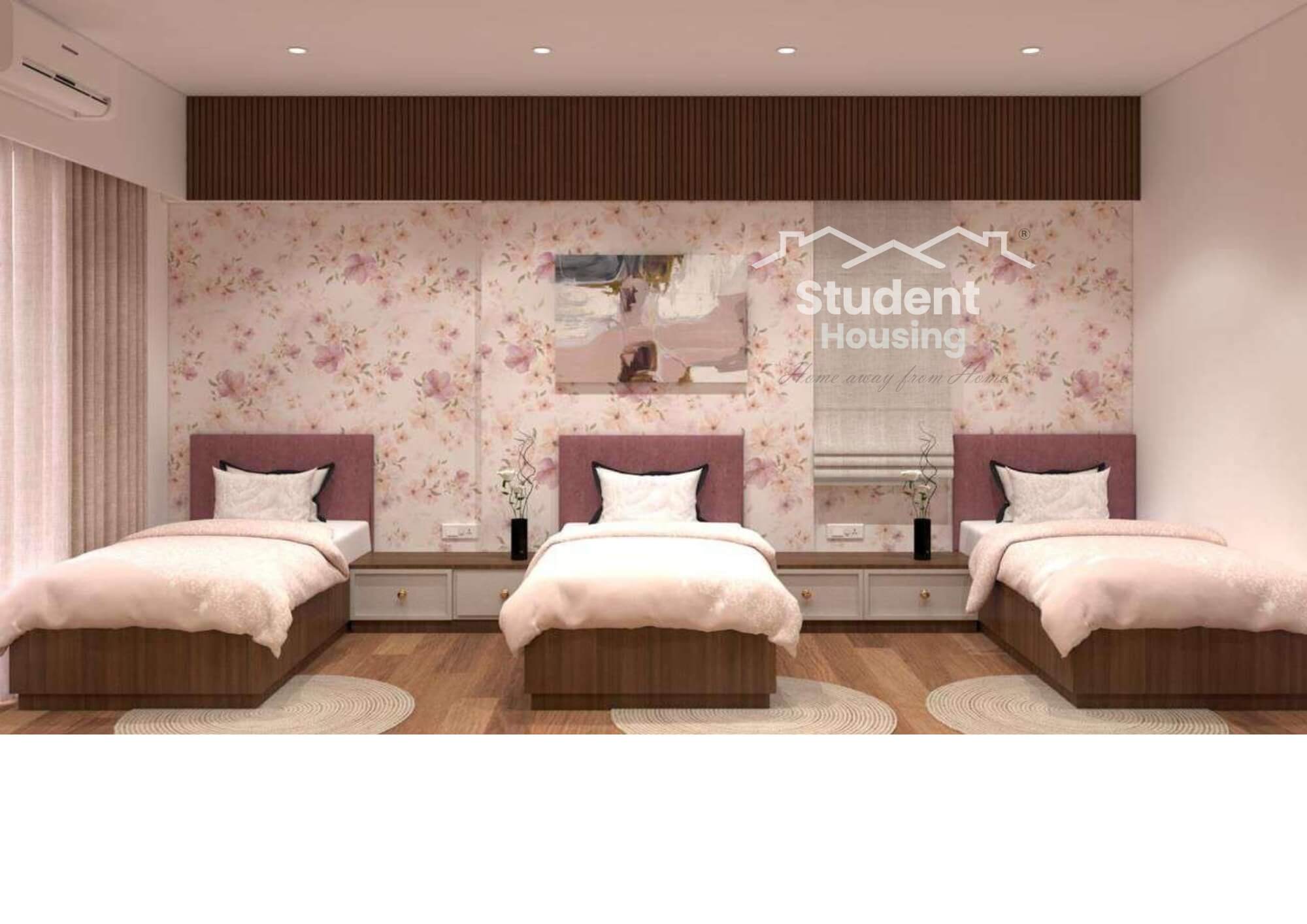 Atlantis by Student Housing is one of the best hostels for girls in Mumbai. It renders premium girls’ hostel facility in Mumbai with all in-house amenities. The property features a fully functional kitchen, air-conditioned rooms, and a spacious living room. The hostel is situated at a prime location in Juhu (1-minute walk from NMIMS). This is one of the most luxurious hostels in Juhu, with a juice bar, jacuzzi, gym, recreational area, study rooms, and much more. The rooms are available in twin, triple and four sharing room options.